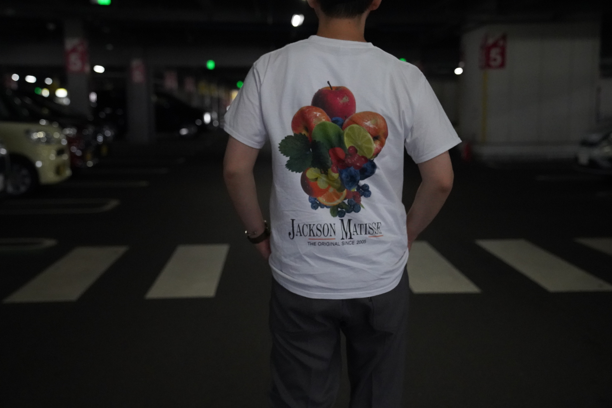 こちらはJACKSON MATISSE とのコラボのpackTシャツ。フロントのワンポイントの刺繍とバックプリントのデザインが魅力的です。